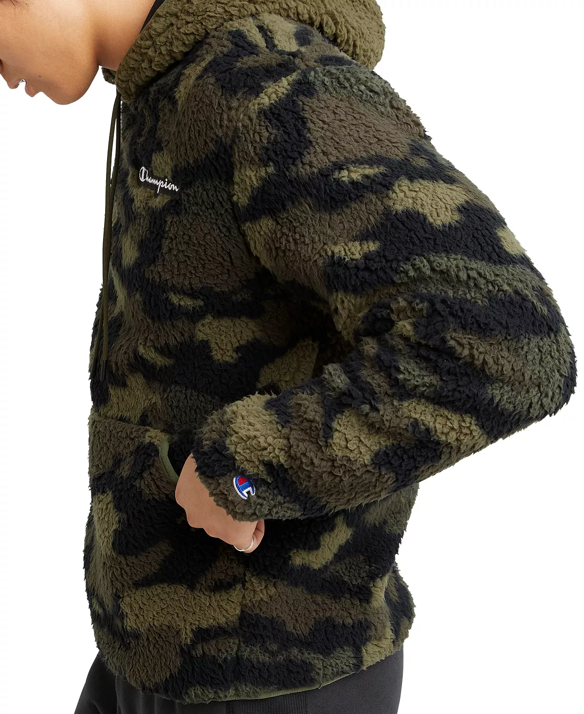 Warm up your laid-back look with the plush fleece fabric and stylish logo detailing of this Cozy camouflage hoodie from Champion.