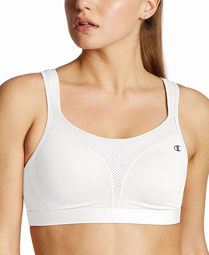Feel confident while working out with no show through, no bounce, no problem in this Spot Comfort sports bra from Champion, featuring ventilation panels and sweat-wicking moisture management for cooling comfort.